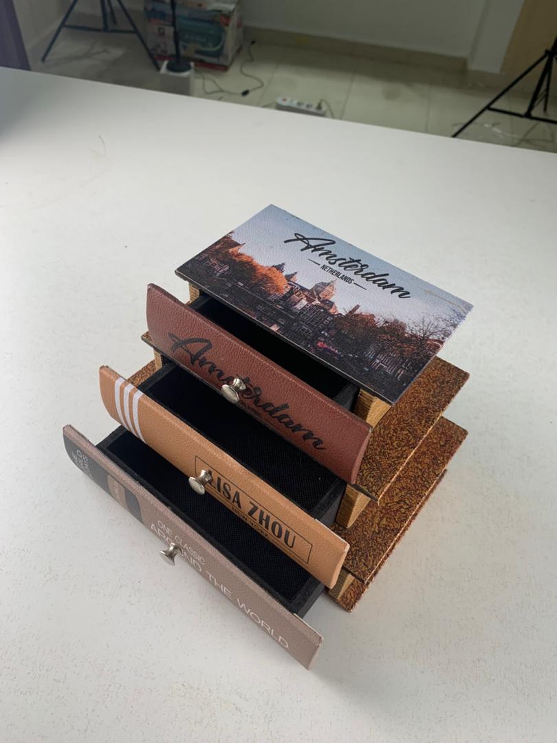أضف لمسةً من الأصالة والسحر الكلاسيكي إلى منزلك مع صندوق التخزين الإبداعي هذا على شكل كتاب. يفتح كل درج ككتاب، مما يسمح لك بتخزين أغراضك الصغيرة وتزيين مساحتك بأناقة.