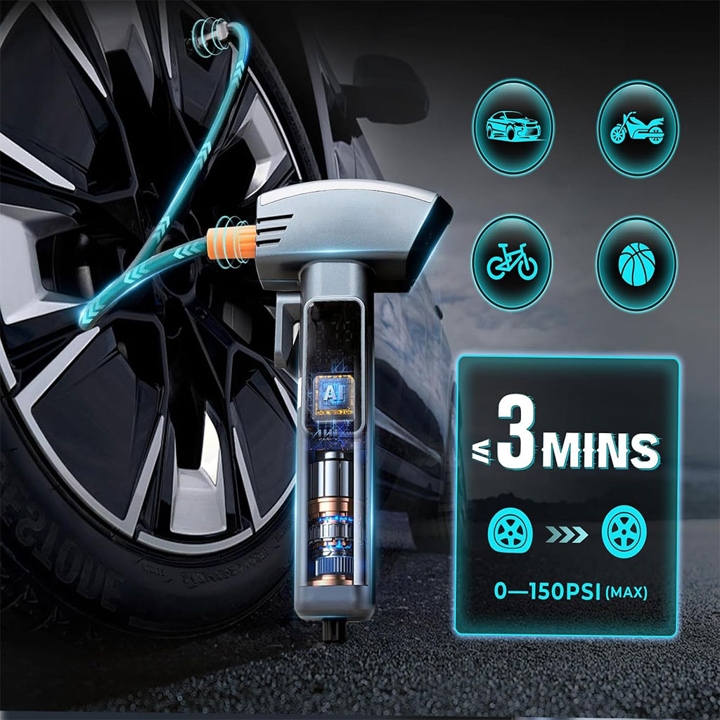 ⚡ منفاخ هواء ذكي محمول بضغط عالي 150PSI – القوة والذكاء في جهاز واحد! 🚗💨