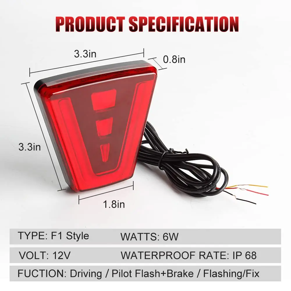 ١. ترقية جديدة ومصابيح خلفية عالمية - يتميز مصباح الفرامل المستطيل الشكل بطراز F1، ويحتوي على ١٥ مصباح LED فائق السطوع، ويُقدم تنبيهًا أفضل أثناء القيادة من غيره. كما أنه عالمي، ومتوافق مع السيارات والدراجات النارية وغيرها.