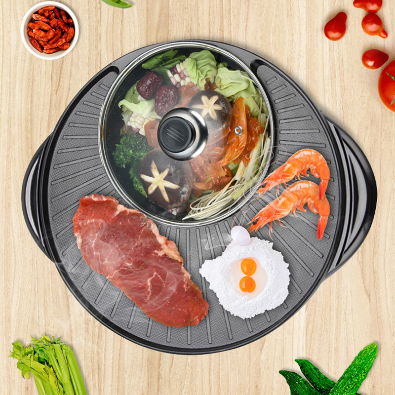 Gril électrique Barbecue et casserole 2en1 multifonction sans fumé