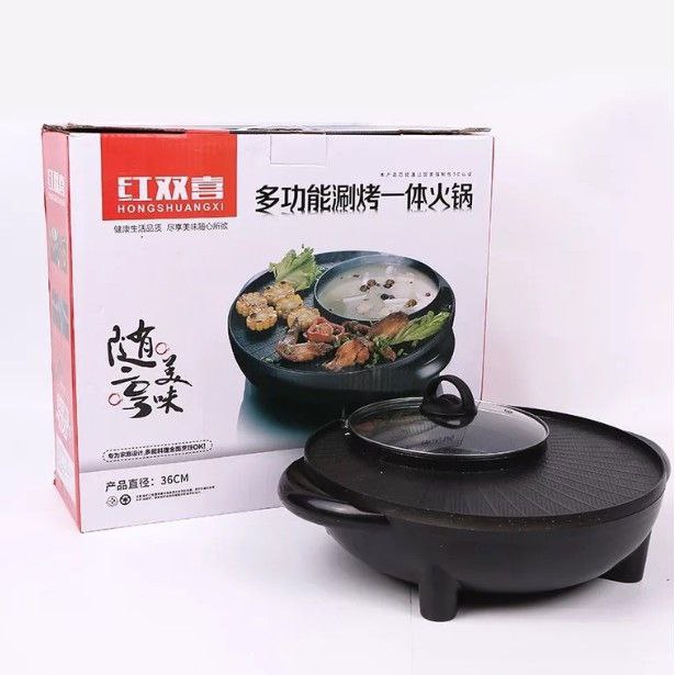 Caractéristiques:Matériel: matériau en alliage d’aluminium coulé et revêtement antiadhésif, sûr et durableSuper contrôle de la température: contrôle de température réglable à cinq vitesses, la chaleur peut être ajustée à volontéPot à double usage: profitez de deux types d’aliments différents pendant la cuisson et le pot chaudMéthode de contrôle: tournez le bouton pour régler la puissance de feu, plus sûrPuissance: chauffage rapide haute puissance 1700WTaille: 36CM