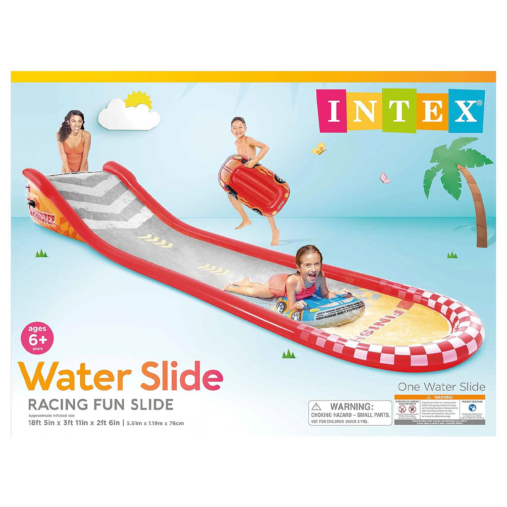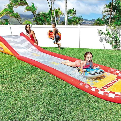 INTEX Toboggan Aquatique Gonflable avec 2 Pilotes de Voiture de Surf et Pulvérisateur Intégré