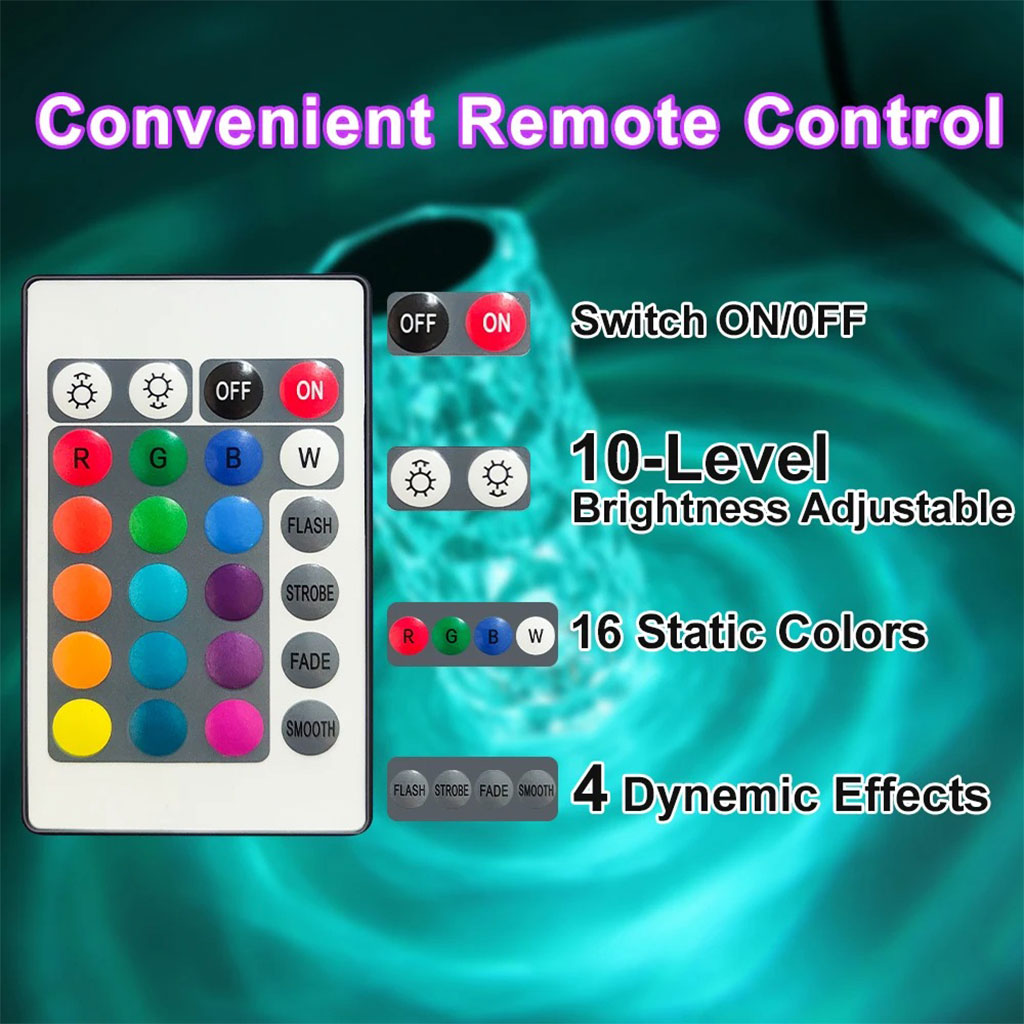 LAMPE EN CRISTAL DE HAUTE QUALITÉ AVEC TÉLÉCOMMANDE ET LAMPE TACTILE – Cette lampe en cristal est fabriquée en acrylique de haute qualité et la lampe en cristal est livrée avec une télécommande, elle augmente la transmission de la lumière, rendant l’effet de lumière plus beau et plus lumineux. La lampe de table en cristal utilise la 3D. Technologie Lorsque vous allumez cette lampe à changement de couleur, la lampe en cristal brille comme une étoile en diamant et les lignes géométriques rempliront instantanément votre pièce d’une sensation romantique.La lampe LED en cristal peut être largement utilisée : lorsque vous allumez cette lampe de table en cristal, elle brille comme un diamant, reflétant l’effet d’éclairage en forme de diamant. Placez cette lampe LED tactile en cristal sur la table à manger ou la table de nuit et décorez-la élégamment pour créer une atmosphère romantique dans votre maison. Ces lampes LED conviennent parfaitement à la chambre à coucher, à la salle de bain, au salon, au bureau, à la table à manger, à la table basse. Cette lampe à cristal est un projecteur intelligent en diamant unique.