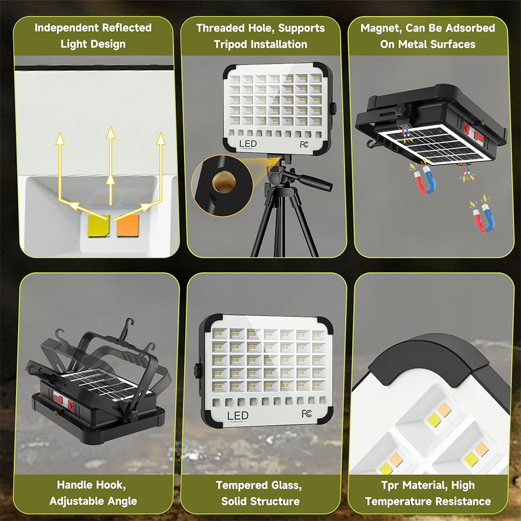 رفيق تخييم متعدد الاستخدامات: صُمم كمصباح تخييم أساسي قابل لإعادة الشحن، يتميز بحامل قابل للتعديل بزاوية 180 درجة، وخطافات مدمجة، ومغناطيسات متينة. علقه في خيمة، أو ثبّته على سطح معدني، أو استخدمه كمصباح مستقل للشواء، أو صيد الأسماك، أو إصلاحات الطرق.