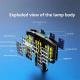 يعمل الكشاف بواسطة 4 بطاريات 18650 بسعة إجمالية 6000mAh، تمنحك:
