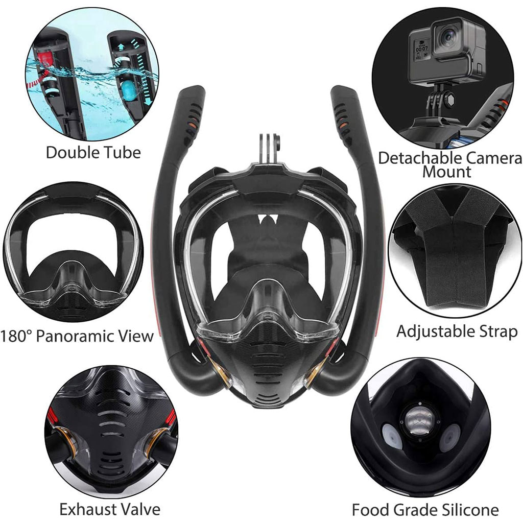 Masque de Plongée à Double Tube avec Support GoPro V2- قناع غوض إحترافي مع حامل كاميرة