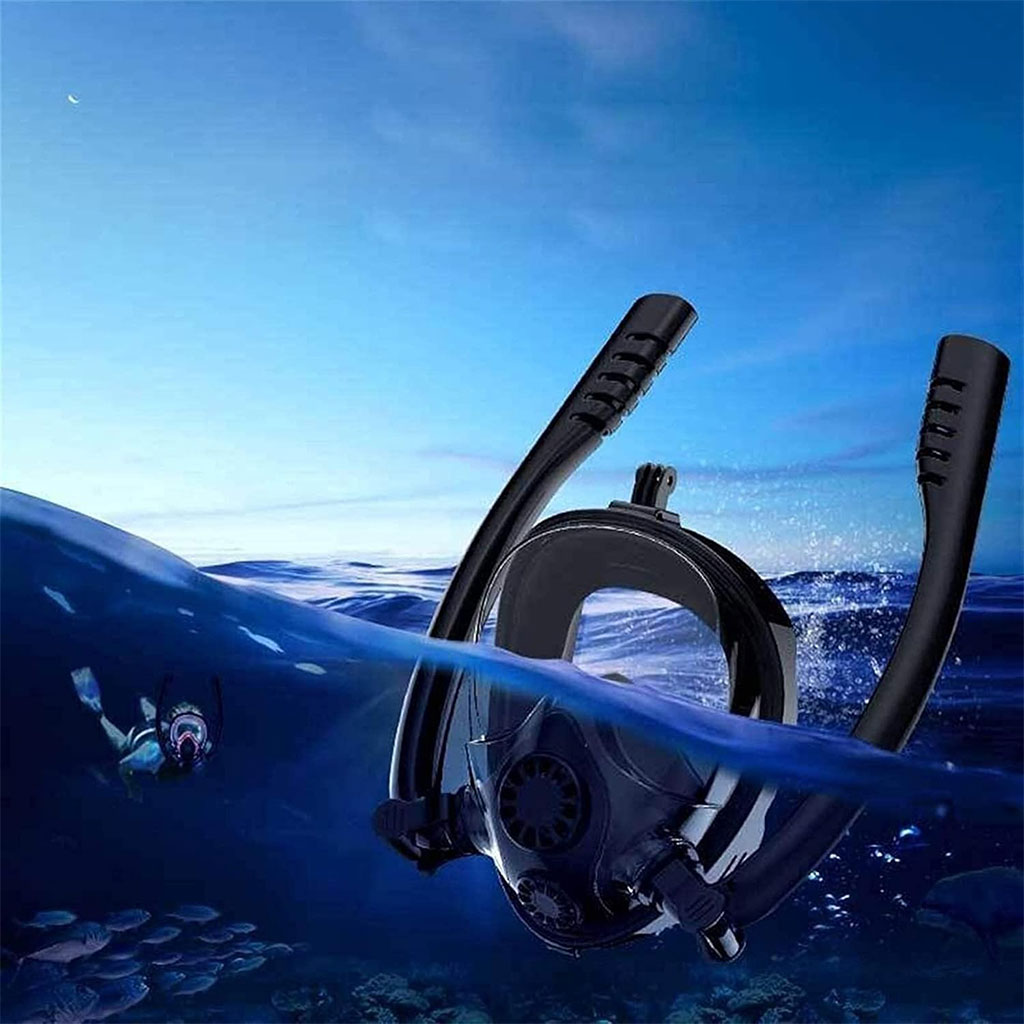 Masque de Plongée Intégral 180 ° Grande vue Anti-buée avec Double Tubes- قناع غوص إحترافي