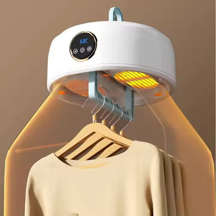 تقنية التجفيف السريع: يتميز مجفف الملابس المحمول بسعة مذهلة تحمل ما يصل إلى 9 ملابس في وقت واحد. يتميز بنظام تجفيف فريد يستخدم مزيجًا من الحرارة وتدفق الهواء لإزالة الرطوبة من ملابسك، مما يسمح لها بتجفيف الملابس بسرعة تصل إلى 20 دقيقة بدلاً من تجفيفها بالهواء أو تعليقها.