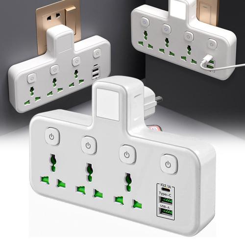 🔋 3 منافذ كهربائية + 3 منافذ USB + منفذ Type-C : شحن سريع وفعّال لجميع أجهزتك الإلكترونية في وقت واحد.