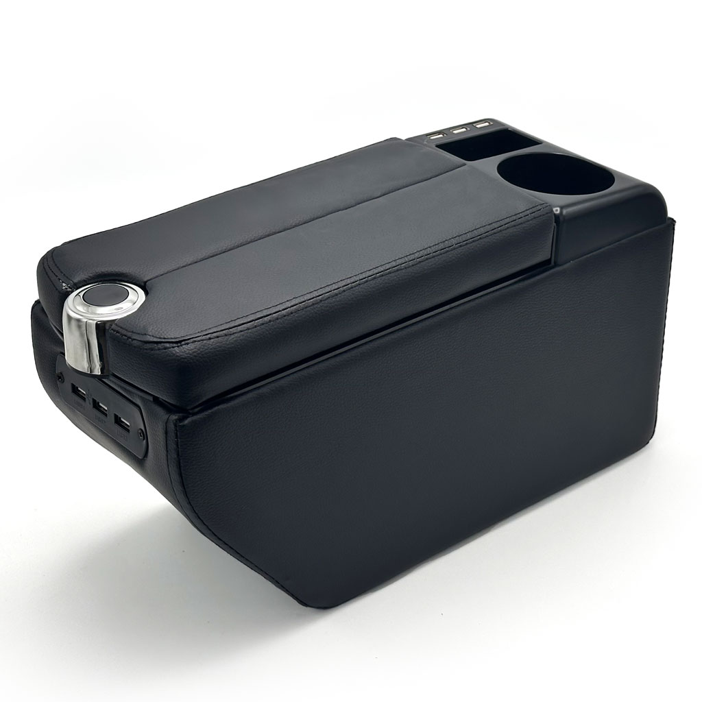 يتميز بمسند ذراع مبطّن بالجلد الصناعي الأسود، يمنحك راحة إضافية أثناء القيادة، ويضيف حلول تخزين عملية تحافظ على ترتيب وأناقة سيارتك.