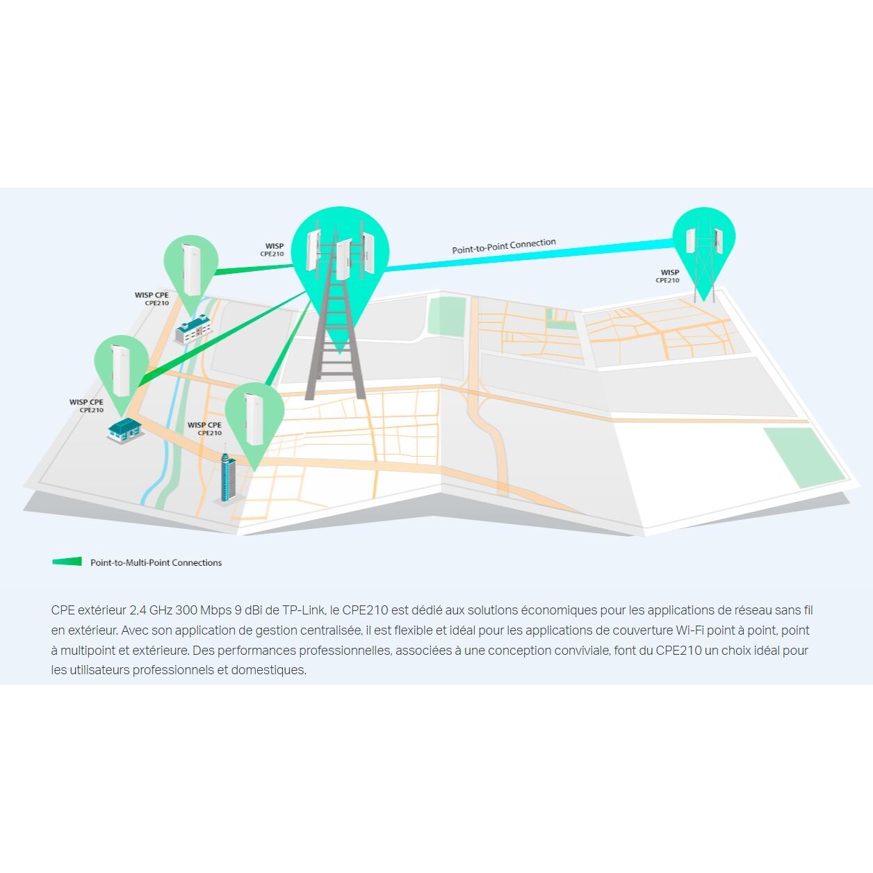 Technologie TP-Link Pharos MAXtream TDMA (Time Division Multiple Access), améliorant les performances de débit, capacité, latence idéale pour les usage Point / Multipoints