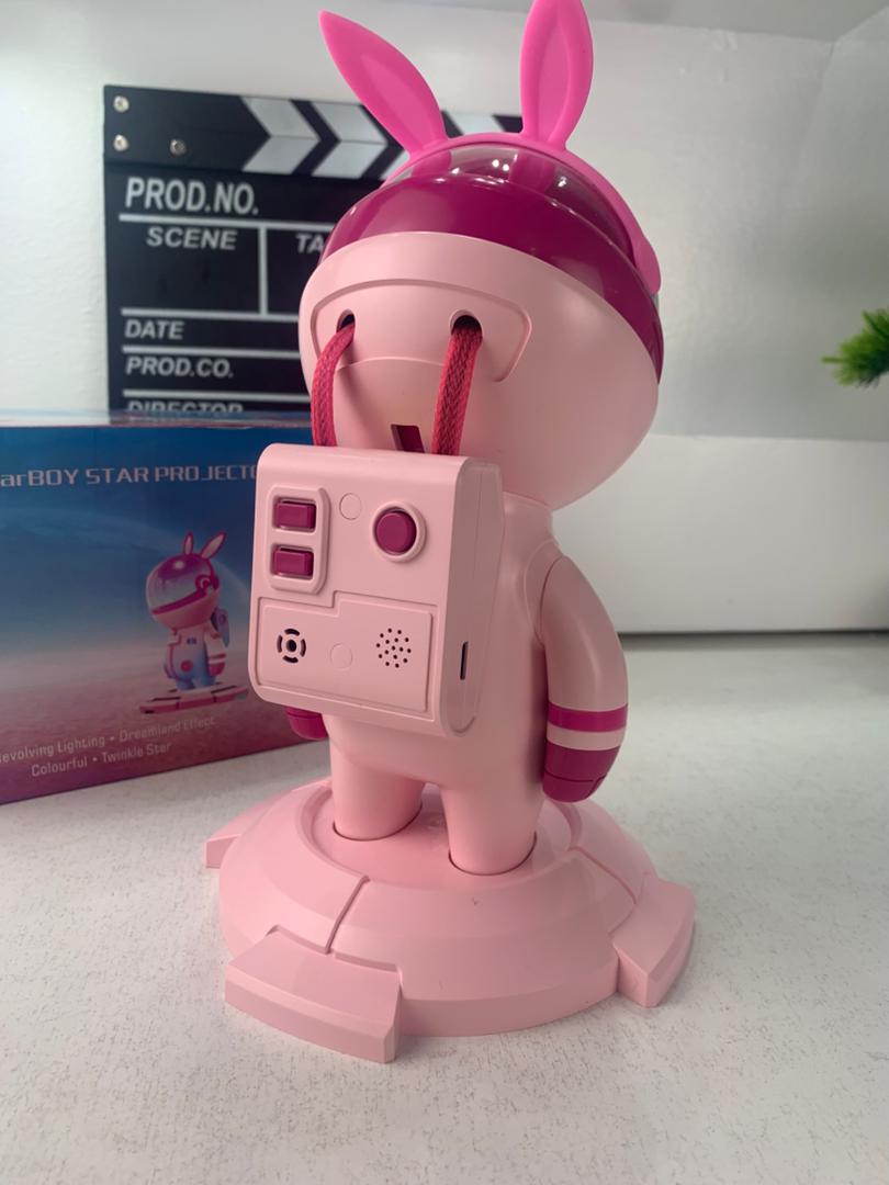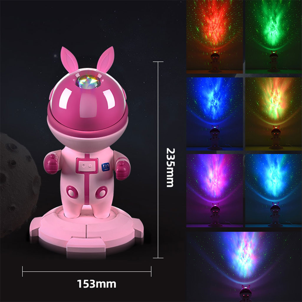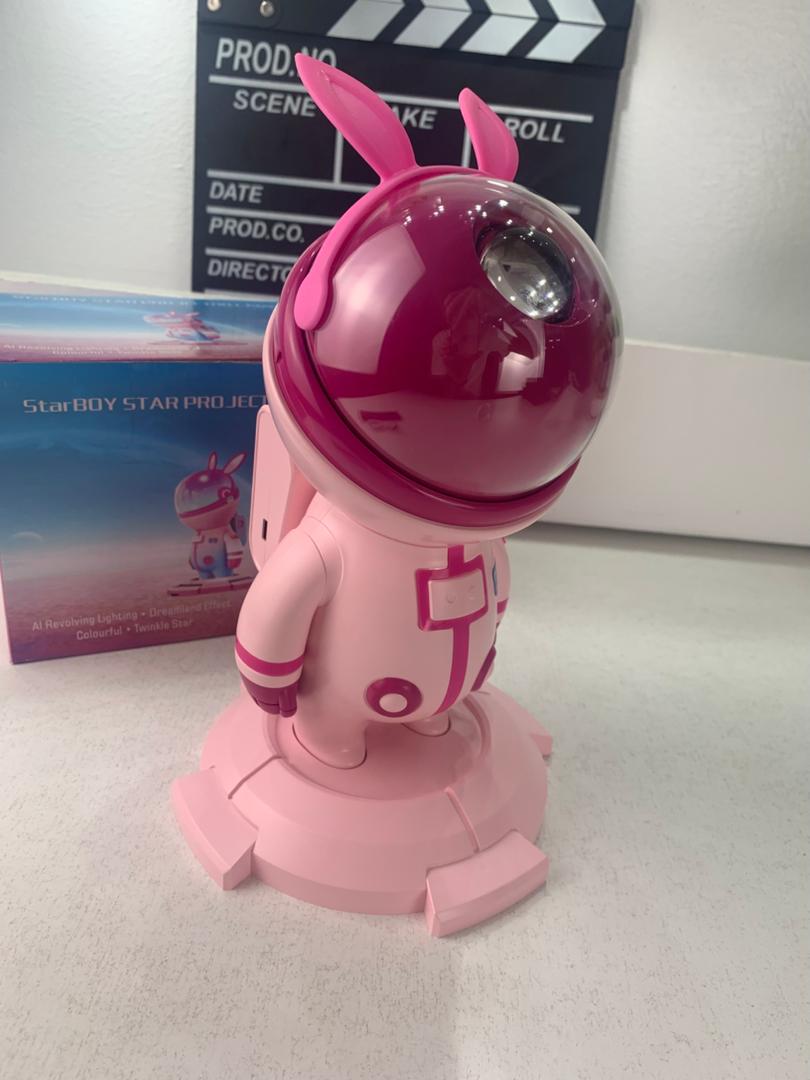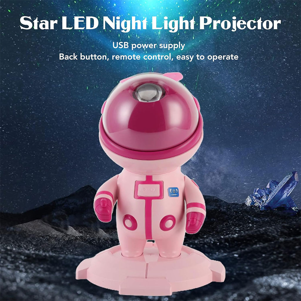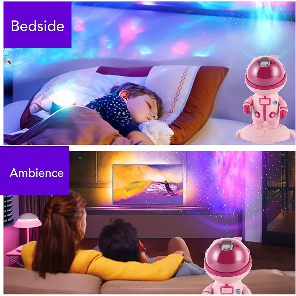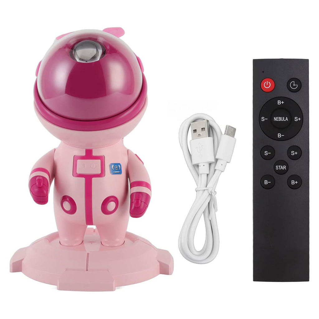 أضف لمسة من السحر إلى غرفتك مع بروجكتور النجوم بتصميم رائد فضاء، الذي يحول السقف والجدران إلى سماء مليئة بالألوان والمجرات المبهرة.