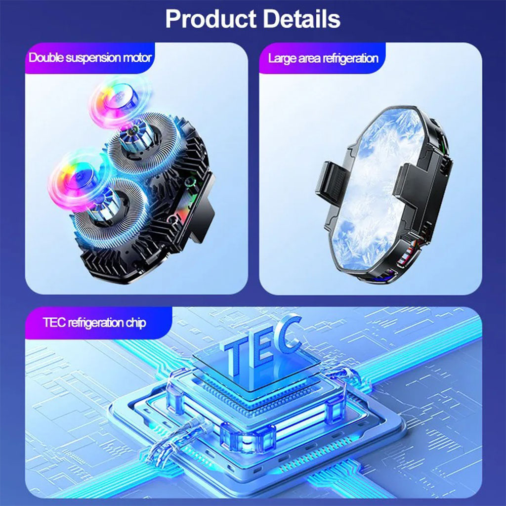 التوافق العالمي: يتميز FS06 بملحقات متعددة الطرازات، مما يجعله مثاليًا للاستخدام مع مجموعة واسعة من الهواتف المحمولة. تبريد مزدوج للعمل: يقوم FS06 بتبريد الهاتف بشكل فعال باستخدام مراوح مزدوجة، مما يحسن أداء البث المباشر ودقته. أداء تبريد فعال: مع FS06، يمكنك تحقيق درجة حرارة أقل من 105 درجة مئوية لضمان الاستخدام المستمر والمتواصل. مبرد FS06 | مبرد FS06 | سخان FS06 المتقدم: يتميز FS06 بتصميم مبتكر لتحسين تبريد الهاتف المحمول، والحفاظ على الأداء الأمثل. تصميم تحكم مبتكر: يسمح وضع التبريد الرئيسي FS06 بالتحكم الرقمي السهل في درجة حرارة الهاتف.