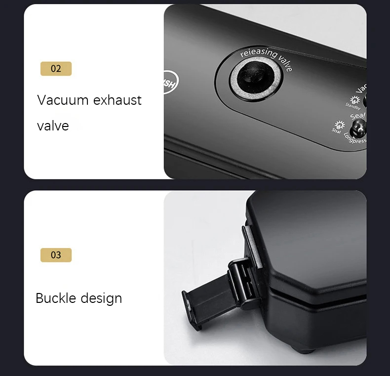 À propos de cet article【Conseils Chaleureux】 – – 1. S’il vous plaît placer le sac à vide sur une éponge scellée et placez l’ouverture du sac à vide sous un barbeau noir, la nourriture dans le sac ne doit pas dépasser les 2 / 3 du sac. 2. Il y a deux méthodes d’utilisation, seulement scellé et sous vide plus scellé. Si l’étanchéité sous vide est nécessaire, vous devez appuyer sur le bouton “étanchéité sous vide”. 3. Une fois l’étanchéité sous vide terminée, pensez à ouvrir la vanne de libération.【Garder les Aliments Frais】–la machine à sceller sous vide élimine l’air et aide à prolonger la conservation des aliments. Les aliments scellés et stockés dans le réfrigérateur dureront 5 fois plus longtemps et auront toujours le même goût frais que le jour où ils ont été scellés.【Économisez de l’argent】–planifiez vos repas quotidiens deux fois plus facilement que les recettes de vos plats préférés, puis économisez l’excédent pour un repas rapide et nutritif le soir de votre journée de travail chargée. Si vous achetez beaucoup d’articles que vous utilisez régulièrement, passez moins de temps et d’argent à l’épicerie.【Forte Aspiration】La machine de scellement sous vide élimine tout l’air, forme un joint étanche à l’air et s’arrête automatiquement lorsque le joint est terminé. Une aspiration plus forte de 65 kPa ferme rapidement le vide et le scelle en 10 à 20 secondes.【Inclus】: Vous obtenez 1 machine à sceller sous vide + 10 sacs sous vide.