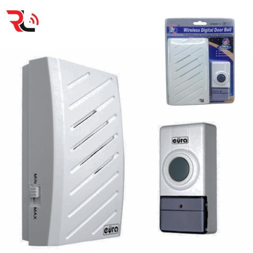 Sonnette sans fil – caractéristiques :– alimentation ~230V/50Hz directement depuis la prise de courant domestique – ne nécessite pas d’installation supplémentaire – bouton alimenté par pile– 16 sons au choix, sélection du son via bouton à l’intérieur de l’émetteur– système de codage de cloche et de bouton – possibilité d’agrandir l’ensemble avec des éléments supplémentaires (système EURA-BELL)– facilité d’utilisation et de montage– ne nécessite pas de connexion par câble– plage de fonctionnement min. 50m en zone ouverte– la transmission n’interfère pas avec le fonctionnement d’autres appareils– la technologie numérique utilisée dans le bouton de la sonnette prolonge considérablement la durée de vie de la batterie– Design moderne– faible consommation d’énergie– pile pour le bouton (émetteur) incluse– bouton/émetteur étanche