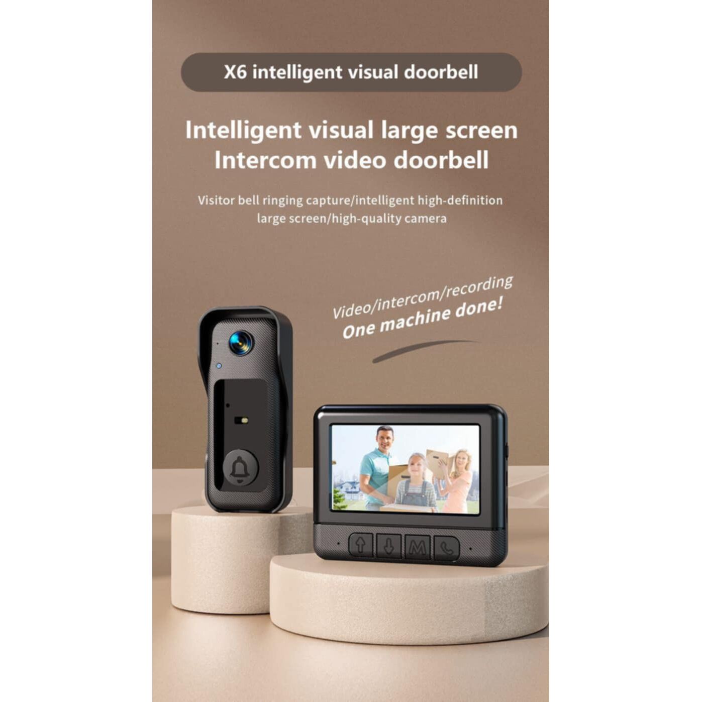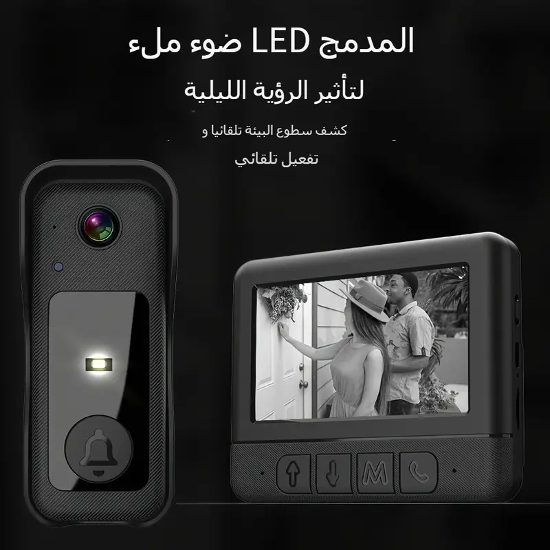 كاميرا عالية الدقة ورؤية ليلية: لا حاجة للاتصال بهاتف محمول، فهذه الجرس اللاسلكي مزود بشاشة كبيرة مقاس 4.3 بوصة، ومجال رؤية واسع للغاية يبلغ 130 درجة، وكاميرا عالية الدقة 30 وات، وإضاءة LED للرؤية الليلية. يمكنك رؤية البيئة الخارجية بوضوح ليلاً ونهارًا دون الحاجة إلى فتح الباب أو استخدام وظيفة عين القط. مثالية لكبار السن والأطفال، فهي تقلل من مخاطر الخطر. جهاز اتصال داخلي بالفيديو: تتميز هذه الجرس المزود بكاميرا بجهاز اتصال داخلي بالفيديو ثنائي الاتجاه، مما يوفر إشارة فيديو مستقرة وصورة وصوت واضحين. يكفي اتصال واحد لإجراء مكالمة فيديو مع زوارك. عمر بطارية طويل ومقاومة للماء IP68: تتميز الجرس بتصميم منخفض الاستهلاك وبطارية بوليمر مدمجة بسعة 1000 مللي أمبير في الساعة، مما يوفر عمر بطارية طويل وجودة صورة أكثر موثوقية. الشاشة تعمل بالتيار الكهربائي ويمكن شحن الجهاز باستخدام شاحن هاتف محمول عادي.