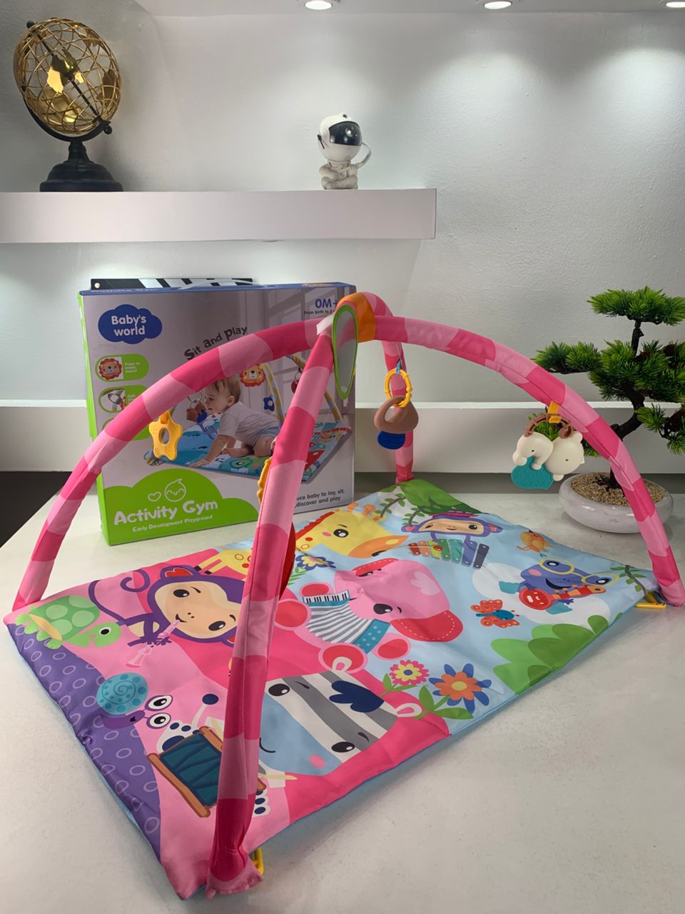 بفضل القوس المرن المزوّد بألعاب معلقة والتصاميم المبهجة على السجادة، سيحصل صغيرك على مساحة آمنة وممتعة للاستكشاف والنمو.
