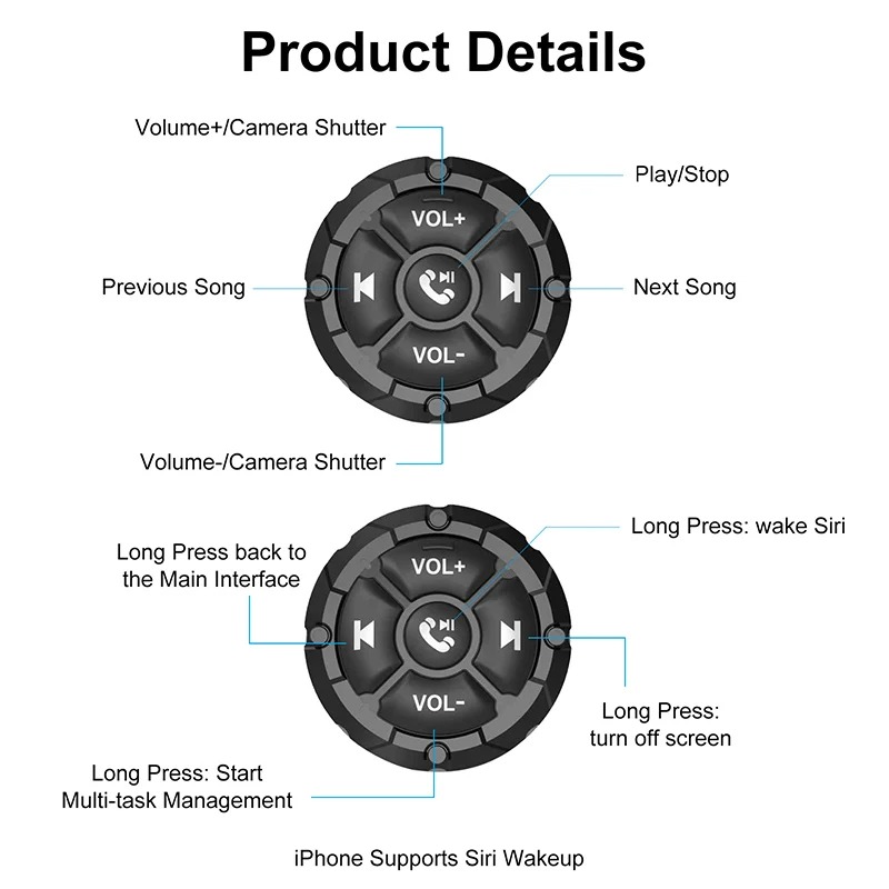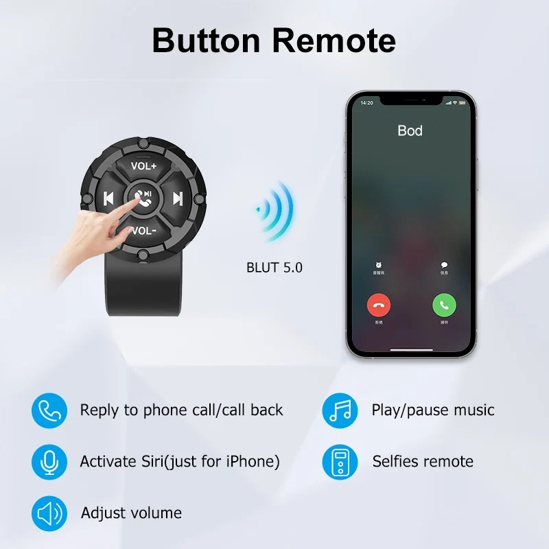 استمتع بالتحكم في موسيقاك وتطبيقاتك بسهولة وأمان مع زر التحكم الذكي بالبلوتوث، دون الحاجة للمس هاتفك.