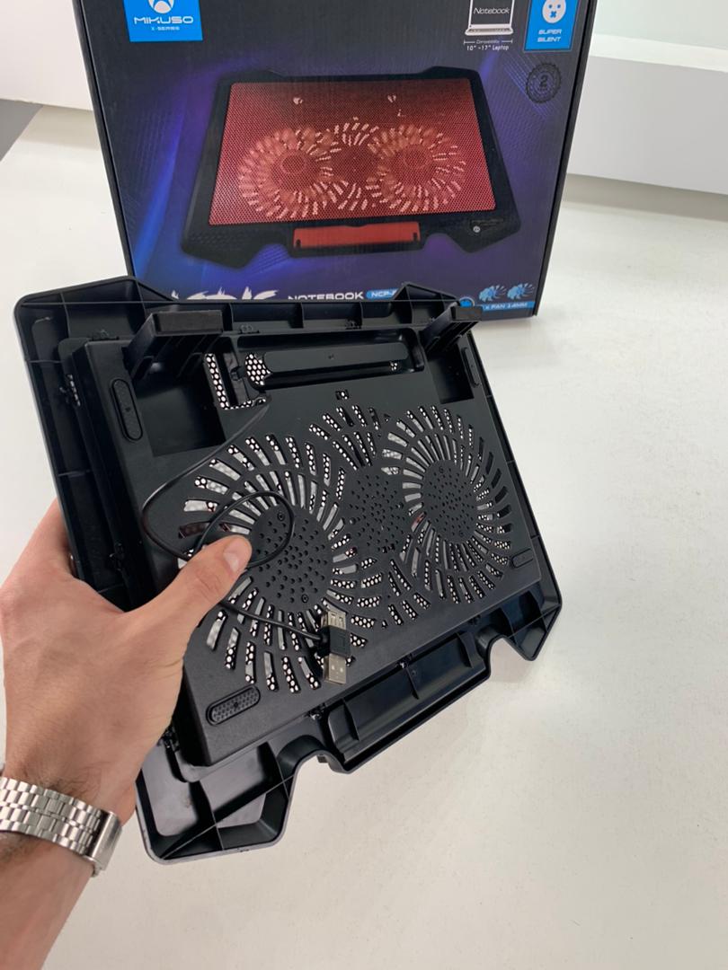 مناسب لأجهزة الكمبيوتر المحمولة مقاس 10-17 بوصة | الأبعاد 36*28*2 سم | عدد المراوح: 2 (14 مم) | سرعة المروحة 1000 دورة في الدقيقة (RPM) | جهد استهلاك الطاقة 5 فولت | استهلاك الطاقة 2.5 واط | إمكانية تعديل الارتفاع | تصميم هادئ |