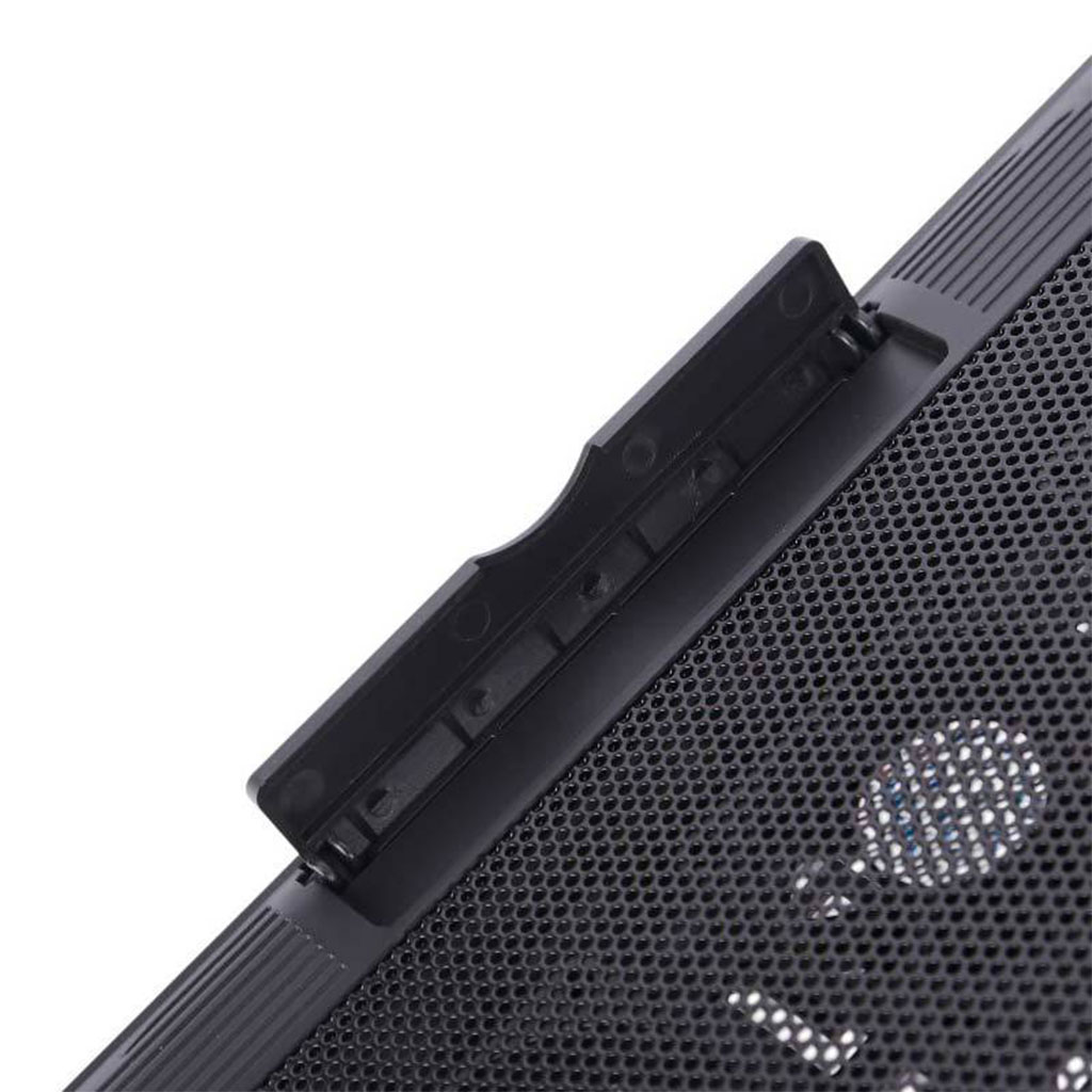 ارتفاع قابل للتعديل بأربعة مستويات مختلفة، مع مشبك تثبيت لمنع انزلاق الكمبيوتر المحمول.